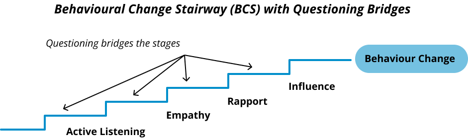 Listening and questioning work because they move people through the Behavioural Change Stairway — the process by which conversations shift behaviour.